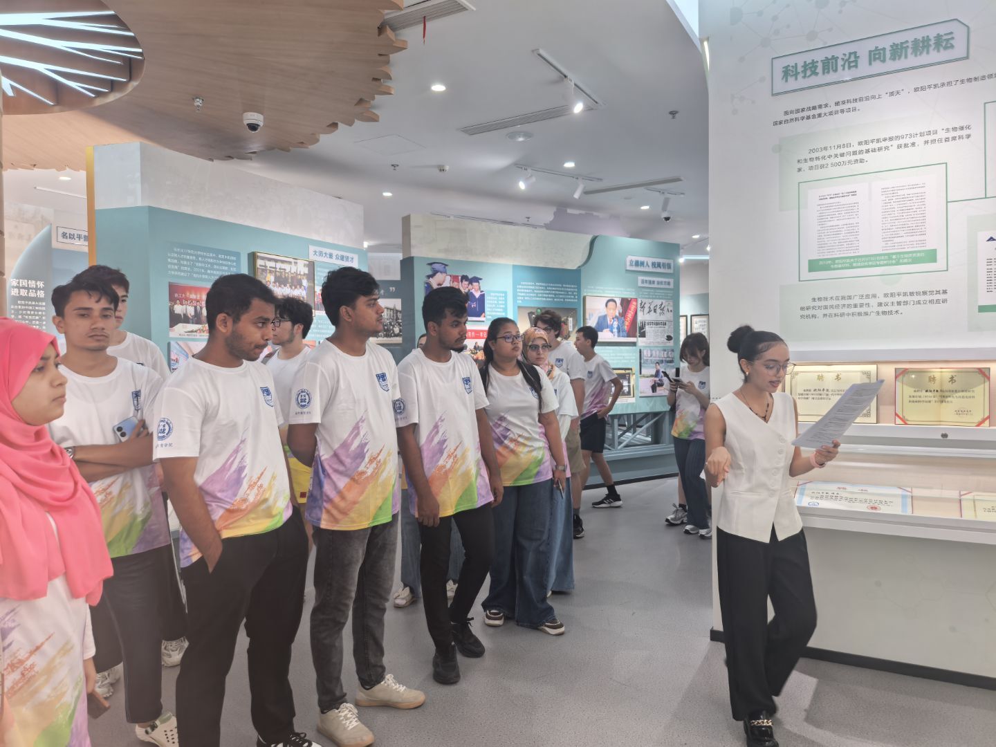 为了让留学生更全面地了解学校的发展历程和精神内核,太阳成集团tyc234cc留学生管理办公室的老师们倾注了大量心血,通过翻译导览讲稿、严格筛选并培训留学生讲解员,多次赴校史馆进行实地演练。当天,在三名留学生讲解员的全英文导览下,全体新生分成四批次参观了校史馆主馆、时钧纪念馆、欧阳平凯纪念馆和临展厅(博观堂)。参观过程中,留学生们神情专注、仔细聆听,不时驻足观看并拍照留念,初次领略了学校的深厚底蕴、辉煌成就以及先贤们的先进事迹。活动结束后,他们纷纷表示对学校有了直观且具体的认识和感知,对即将开始的学业充满了期待和动力;未来将珍惜在南工大的学习时光努力成才,为学校的发展增添新的光彩。